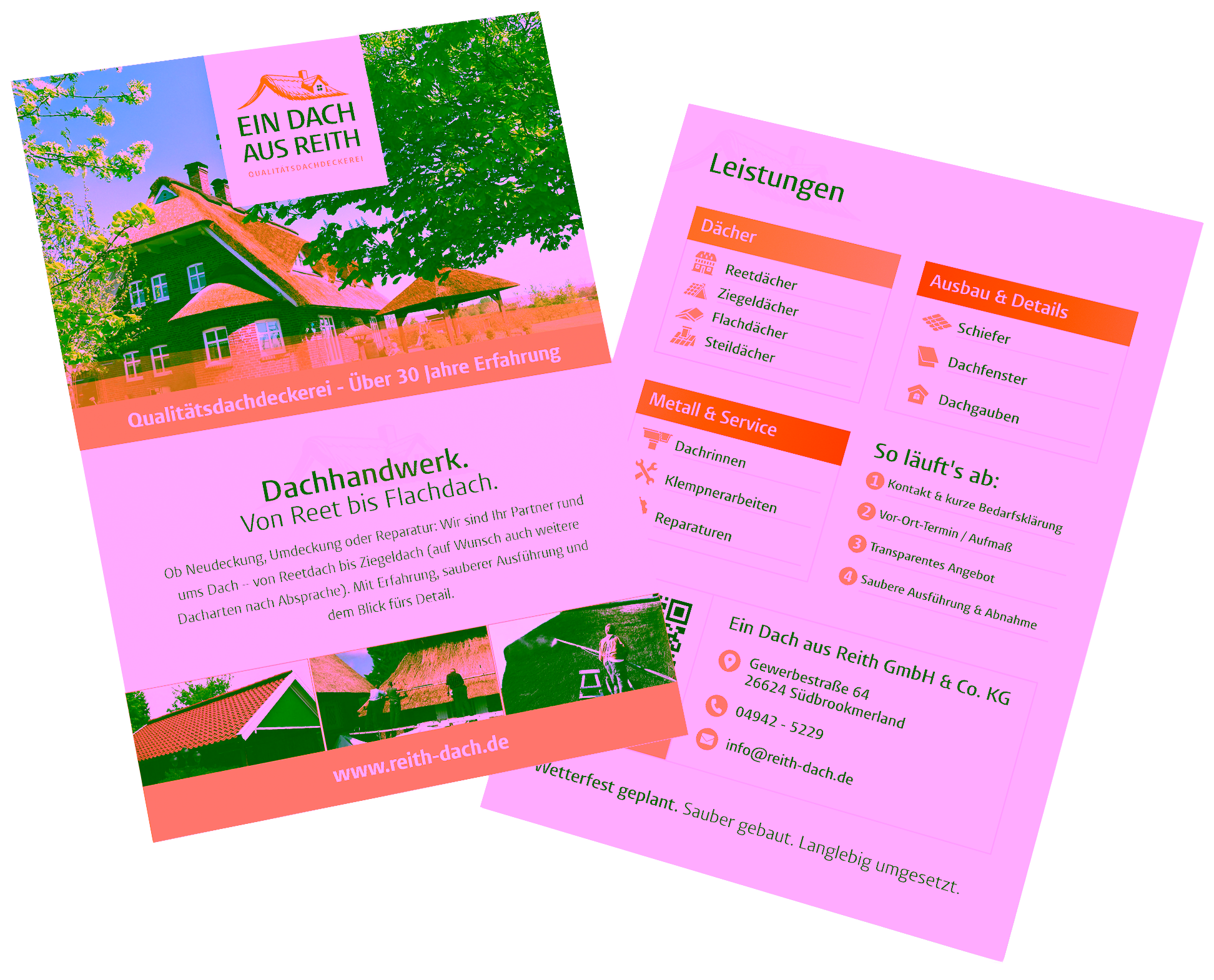 Auf Basis des neuen Erscheinungsbilds haben wir anschließend die wichtigsten Printmaterialien umgesetzt: einen A5-Flyer zur kompakten Vorstellung der Leistungen sowie ein Visitenkarten-Design für den professionellen Erstkontakt. Dabei haben wir auf klare Struktur, gute Lesbarkeit und ein stimmiges Design geachtet, das zur Zielgruppe passt. Die komplette Druckabwicklung haben wir ebenfalls koordiniert – von druckfertigen Daten bis zur Abstimmung mit der Druckerei – damit am Ende alles genauso wirkt, wie es soll: hochwertig und verlässlich.